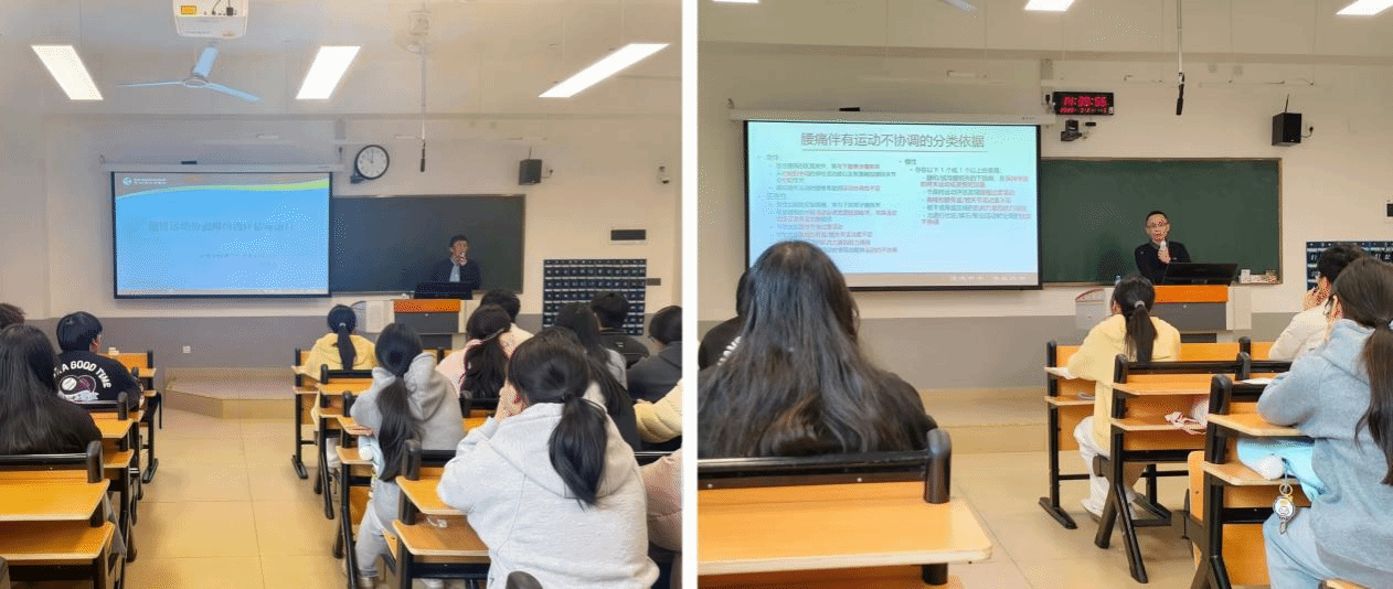下午,陈水金主任医师团队(含福建中医药大学附属康复医院陈乐春副主任医师、福建师范大学吴燕丹教授)为2025级运动康复专业学子开展“腰椎运动协调障碍评估与治疗”专题讲座及实操指导,班主任欧林老师介绍专家后活动启动。