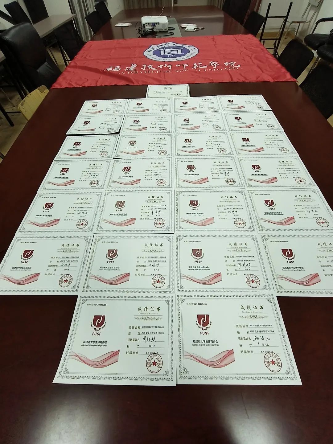 其中,体育学院社会体育指导与管理专业2021级柯炜分别摘得乙组男子200米和乙组男子3000米金牌,社会体育指导与管理专业2019级余若冰获得乙组女子500米金牌,体育教育专业2020级章诗寒获得乙组女子3000米金牌,经济与管理学院市场营销专业2022级张婧珊和教育学院学前教育专业2021级姚婷婷、邱洁玉、段美富获得甲组4*200米接力金牌;经济与管理学院张婧珊获得甲组女子3000米银牌,体育学院体育教育专业2020级周钰婕获得乙组女子500米银牌,社会体育指导与管理专业2021级叶林沛、柯炜、陈瑞华和2019级江仁荣获得乙组男子4*200米接力银牌;体育学院叶林沛获得乙组男子1000米铜牌,余若冰获得乙组女子200米铜牌,章诗寒获得乙组女子1000米铜牌,教育学院姚婷婷获得甲组女子3000米铜牌。