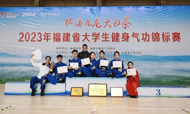 在福建省大学生体育协会主办的2023年福建省大学生健身气功锦标赛中,我校体育学院健身气功队获得体育道德风尚奖和丙组团体总分第三名的佳绩,并分获丙组导引养生功十二法集体项目第二名、丙组八段锦集体项目第三名、女子丙组大舞项目第一名、女子丙组导引养生功十二法项目第一名、男子丙组八段锦项目第四名以及女子丙组马王堆导引术项目第四名。获奖成员包括郑梦凡、傅心宝、蔡娴敏、刘琦胜、张杰伟、罗敏、黄婷等。指导教师为李凤成、刘强。