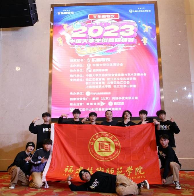 我校街舞代表队由李凤成担任领队,张志扬、杨毅宁担任教练。获奖成员包括体育学院毛小伟、郑明锟、黄勇超、陈梓杰、纪尚堃、李少雄、林昌杰、林世铭、陈轩。