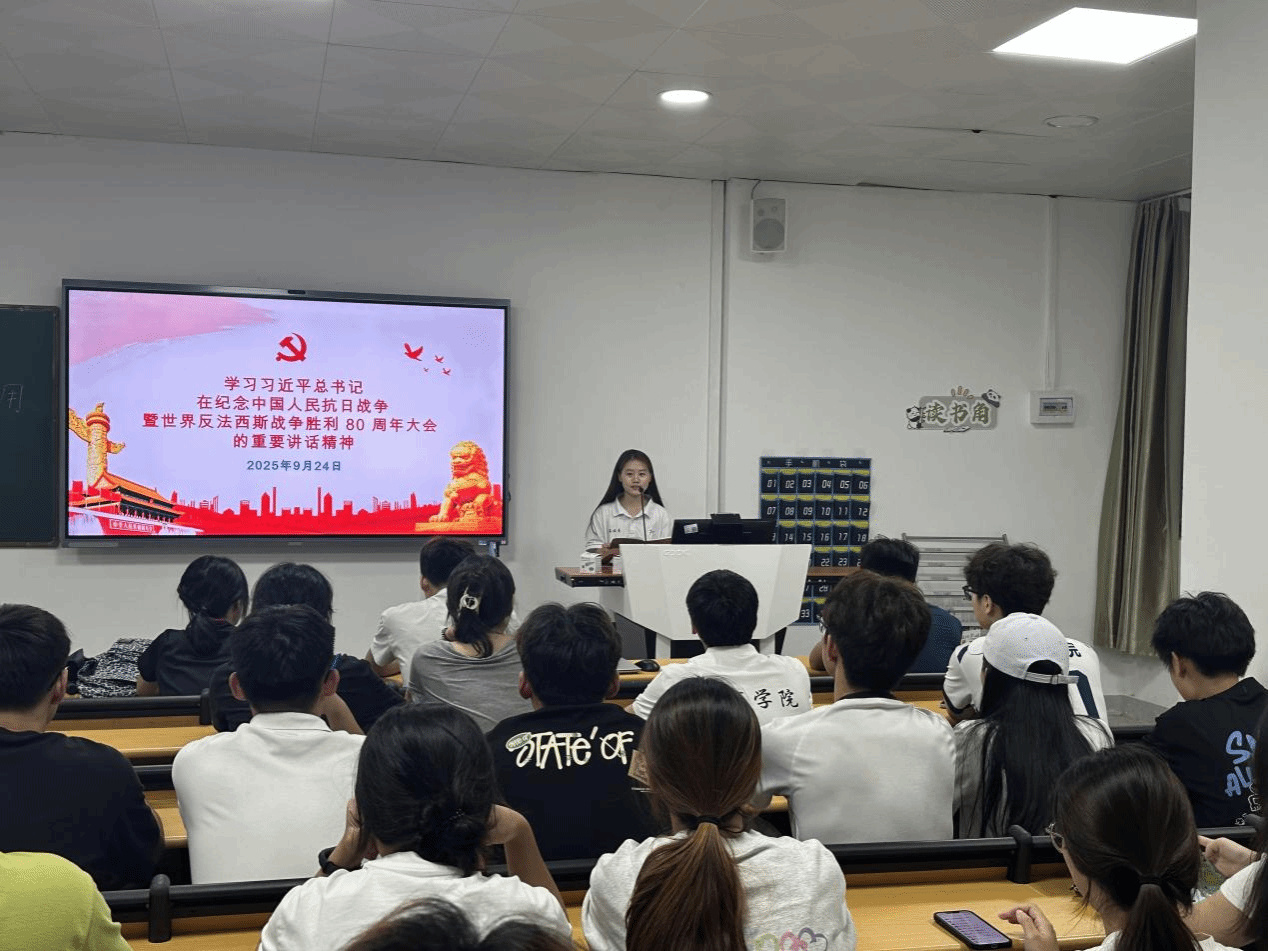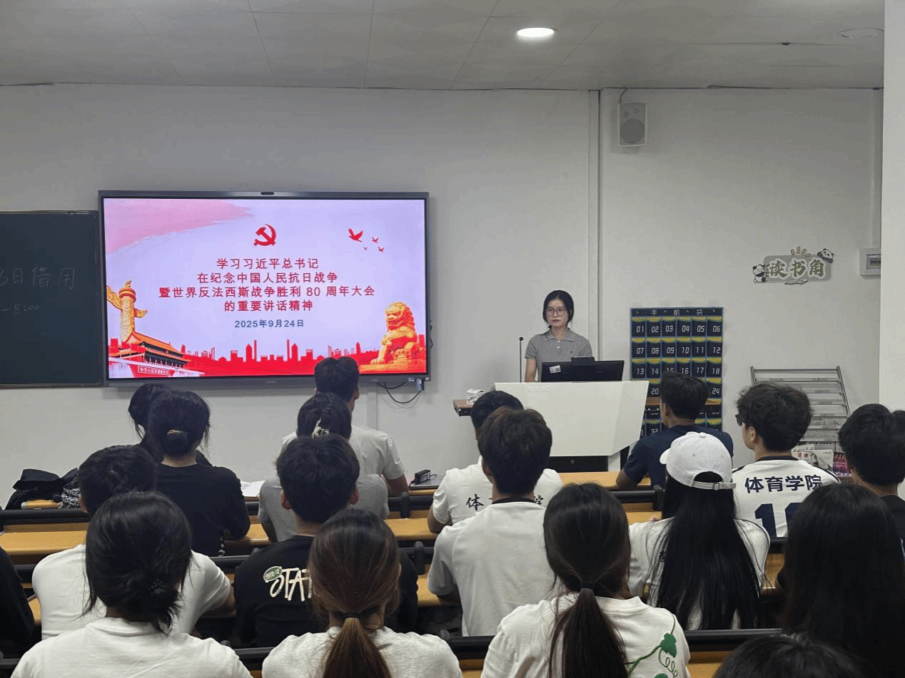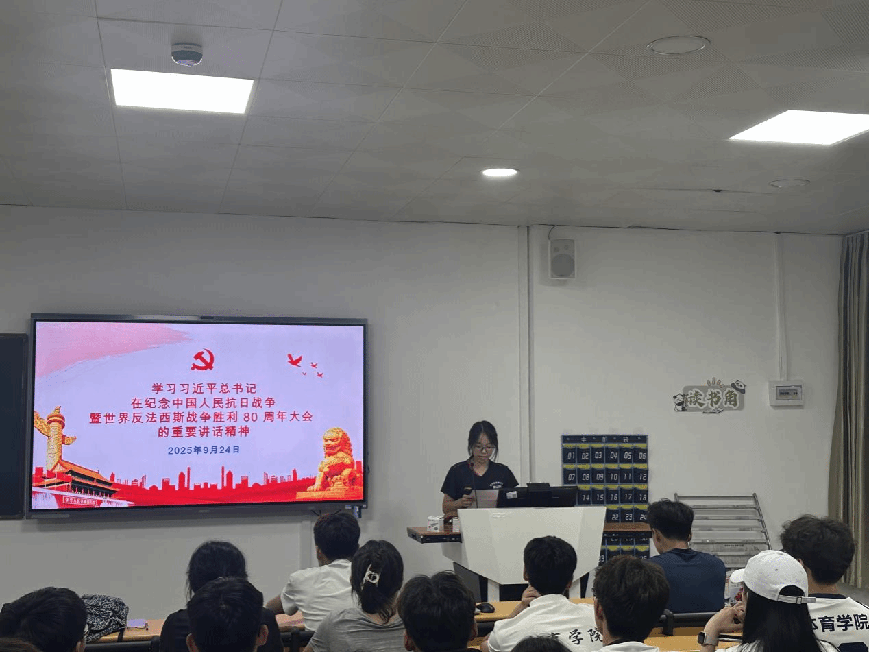 9月24日下午,体育学院思想领航功能型党支部在科学楼109教室召开专题学习会,集中学习习近平总书记在纪念中国人民抗日战争暨世界反法西斯战争胜利80周年大会上的重要讲话精神。支部全体成员参会。