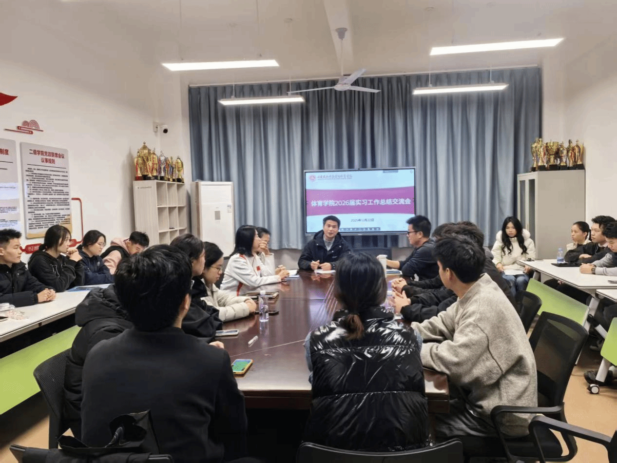 为全面总结教育实习工作成效,梳理经验、分享成果,进一步提升实习工作质量,12月22日下午,体育学院组织召开2026届教育实习总结交流大会。学院副院长(主持工作)许昌、副院长王锋、各专业主任、毕业班辅导员及各实习队队长参加会议。