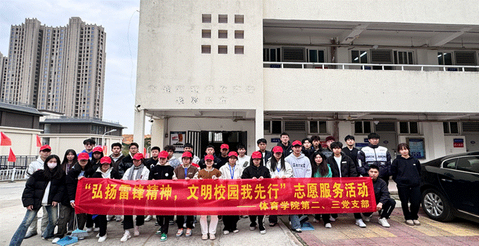 为弘扬和践行“雷锋精神”,营造干净整洁的文明校园环境,3月13日,体育学院第二、三党支部联合开展了以“弘扬雷锋精神,文明校园我先行”为主题的文明清扫志愿服务主题党日活动,两个支部党员和入党积极分子参加活动。