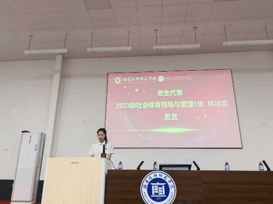 院党委书记林政梅代表学院致欢迎辞,表达了对新生的热烈欢迎,并提出了殷切期望和目标要求,希望新生们能将个人的理想追求融入国家与民族发展的洪流之中,既要在竞技场上奋勇争先,为国为校争光;也要在健康促进、体育产业、文化传播等领域施展才华,为提升全民健康水平、弘扬中华体育精神贡献智慧和力量。