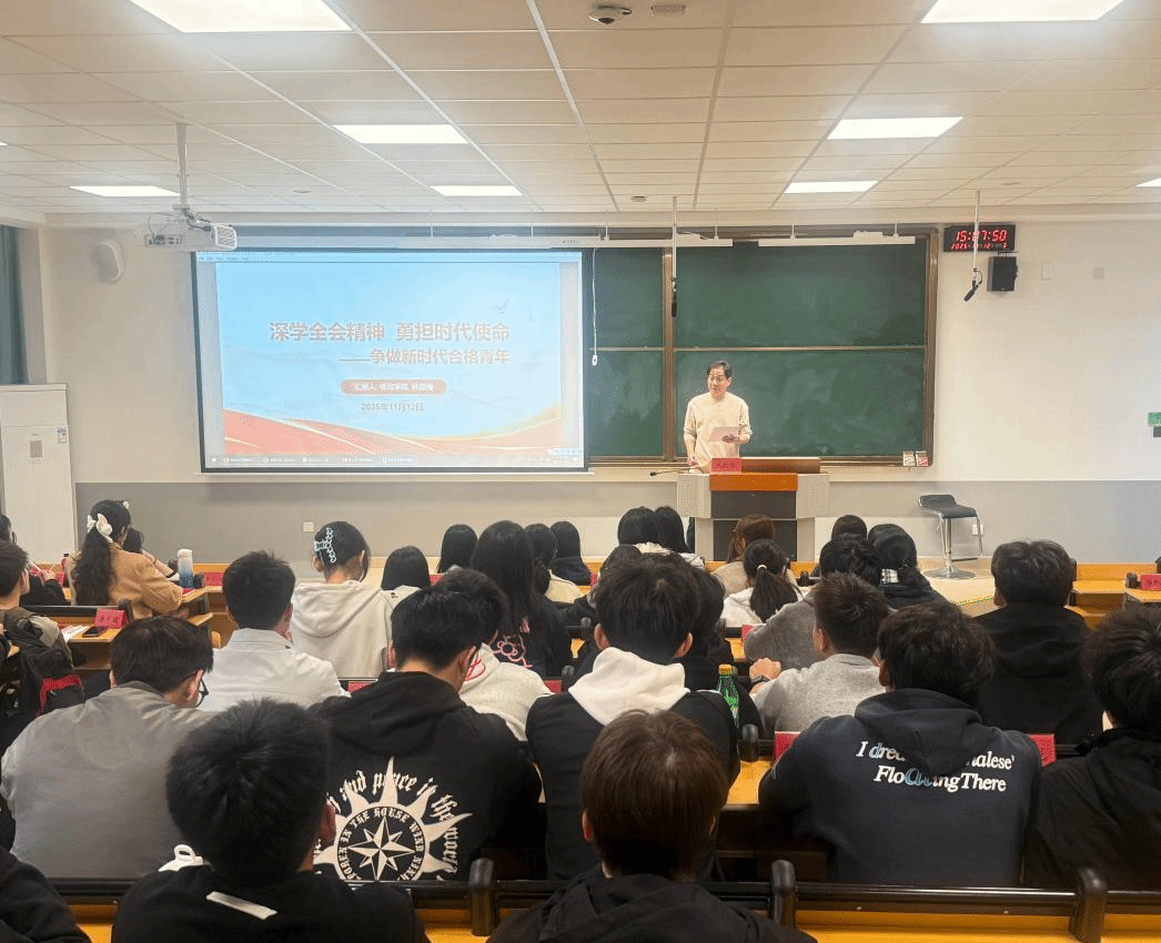 2025年11月12日,体育学院党委书记林政梅以“深学全会精神 勇担时代使命——争做新时代合格青年”为题,为体育学院和海洋学院入党积极分子讲授专题党课。