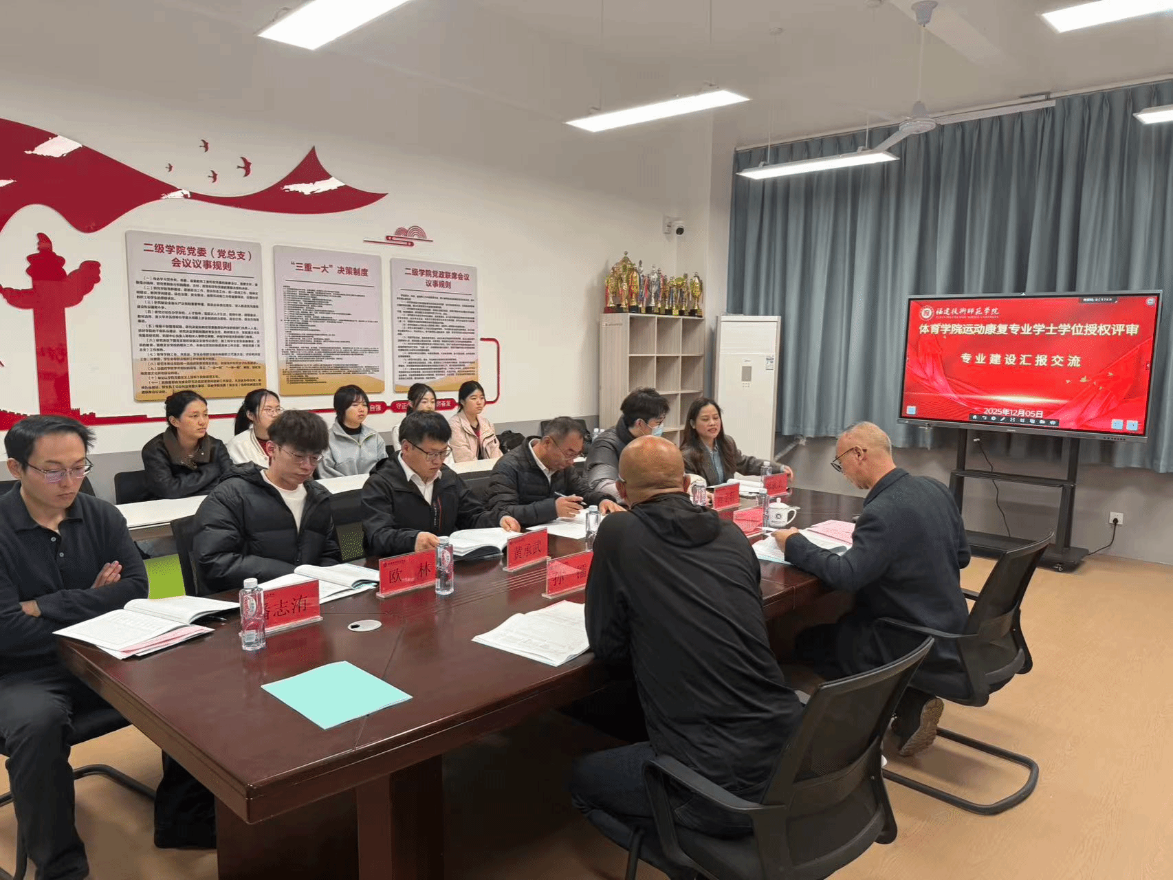 12月5日下午,我院开展运动康复专业增列学士学位授予专业授权评审工作,评审专家组由国务院学位委员会体育学科评议组成员兼秘书长方千华教授、苏州大学体育学院原院长王国祥教授、华南师范大学体育学院院长段锐教授、华侨大学体育学院院长胡国鹏教授、福建医科大学康复医学系副主任孙镭副教授组成,方千华教授任组长。校党委副书记张苏、教务处处长李立耀、体育学院党政领导、运动康复专业负责人及有关师生参加评审相关活动。其中,王国祥教授、段锐教授及体育学院党委书记林政梅教授线上参会。