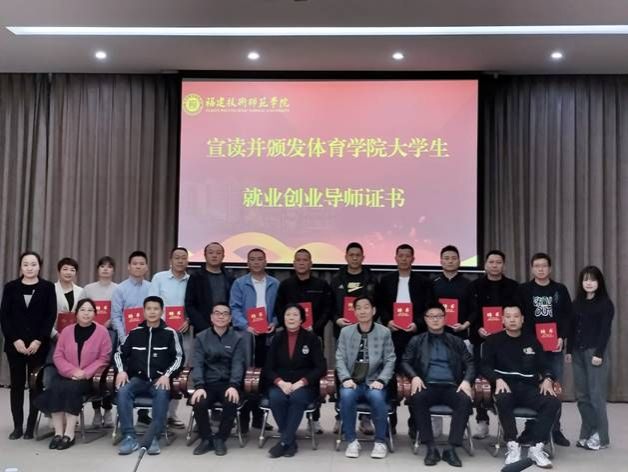 林政梅院长向校友们详细介绍近年来学校、学院的发展情况和取得的成果,并为校友们颁发体育学院大学生就业创业导师证书。